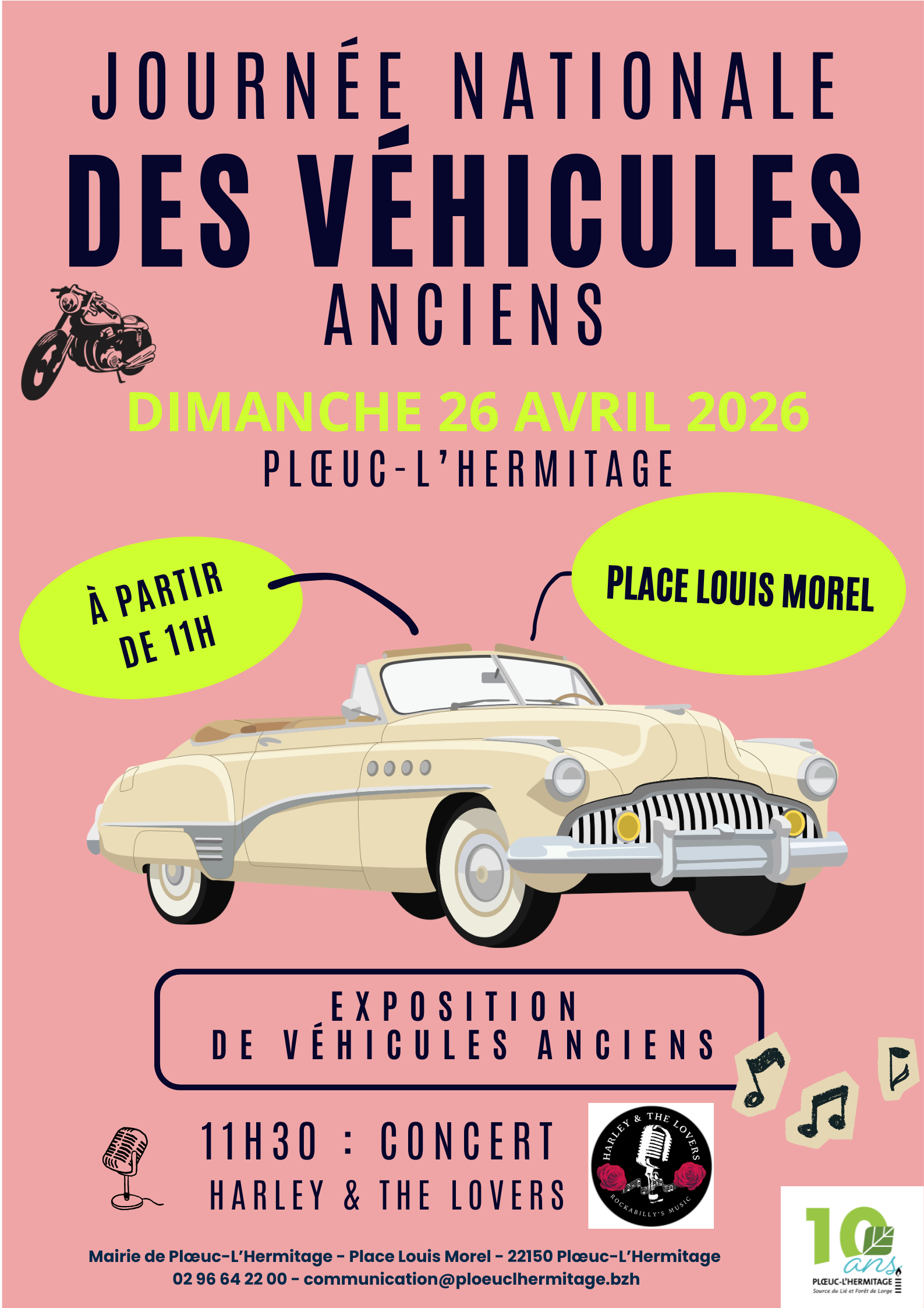 À l'occasion de la Journée nationale des véhicules anciens, RDV sur la place Louis Morel le dimanche 26 avril à partir de 11h pour admirer des véhicules d'époque et assister au concert du groupe Harley & the Lovers.